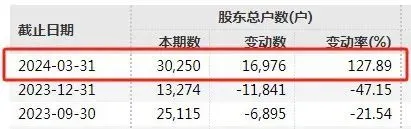 此外,股東戶數(shù)在今年一季度也增長較快。報告期末股東總戶數(shù)已突破3萬戶,與去年末相比增長了127.89%。